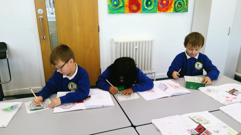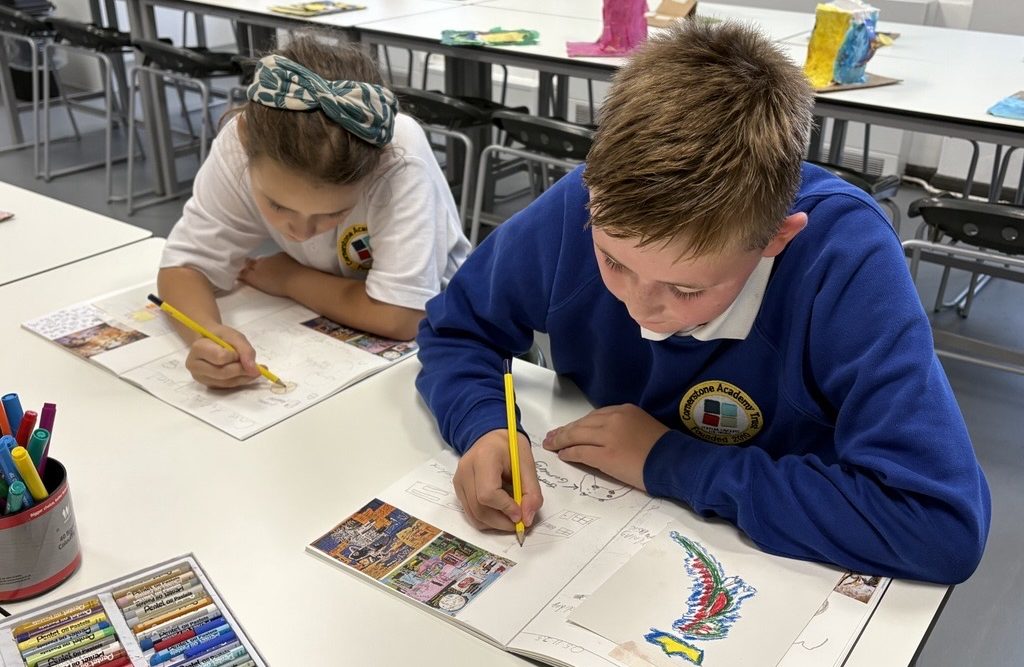 In Year 2, children build on their artistic skills through a range of projects linked to their wider learning. They begin with marbling techniques inspired by the Great Fire of London, exploring colour mixing and texture. In the spring, they create poppy prints, learning to draw, engrave, and print their own designs. They also study the work of Hundertwasser, experiment with still life flower compositions, and explore nature through Henri Rousseau’s jungle scenes. The year ends with detailed cactus observations, helping children refine their drawing and observational skills while developing their own artistic style.